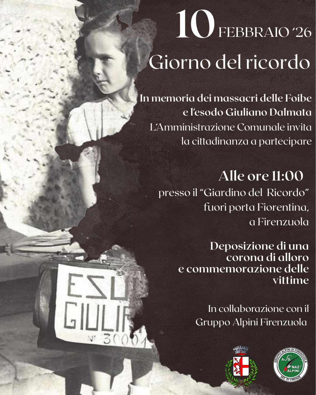 In memoria dei massacri delle Foibe e l’esodo Giuliano Dalmata - L’Amministrazione Comunale invita la cittadinanza a partecipare.